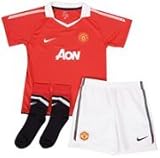 It's never too early to show their Red Devils' pride. Including a game day shirt, shorts and socks, the Manchester United Football Club (3-36 months) Boys' Football Kit gives your little footballer the look of the champs on the pitch with a sporty fit that's easy to put on.This mini-kit features Nike's Dri-FIT fabric to wick sweat away and help keep you dry and comfortable. A superb technical construction is complimented by a striking design including bib V-neck and cuffs on shirt and vented shoulder seam with snap button closure for easy fittings.Features:*Club badge at left chest*Sponsor logo at front*Club graphic at centre back neck*Elastic waist on shorts*Club badge at right hem*Rib cuffs on socks*Fabric: 100% polyester*Machine washWe offer a personalisation service allowing you to have a name and number printed on the reverse of football shirts at an extra charge (£1. 50 per letter, £5 per number).Please click on the personalisation button below to enter your details. Read more