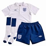 Get your kids supporting the Three Lions with the new Umbro England Home Infants Kit as England take on the world's best players. Dream of your kids lining up alongside England favourites like James Milner, Adam Johnson and Theo Walcott at Wembley Stadium with their very own England Infants Home Kit. Infants England Home Kit Football Shirt > Short Sleeves > Three Lions crest to left chest > Umbro logo to right chest > St George's cross imprinted to shoulders Football Shorts > Elasticated waist > Three Lions crest to right thigh > Umbro logo to left thigh > Includes socks Read more